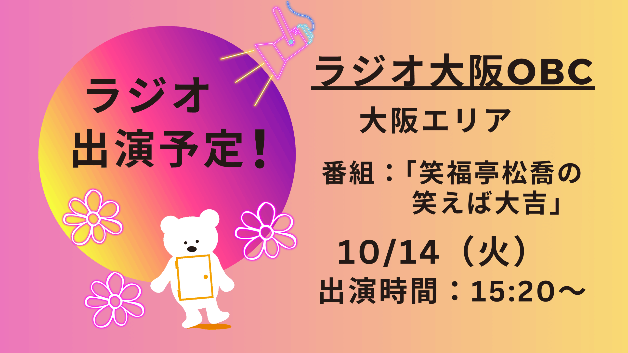 ラジオ大阪OBC 出演予定! 2025年10月10日 以下のラジオ番組で、当協会広報部長が冷凍食品の役立つ情報等をご紹介します。 ぜひお聴きください! 放送局 ラジオ大阪OBC エリア 大阪エリア 日時 10月14日(火)15:20~ 番組名 「笑福亭松喬の笑えば大吉」